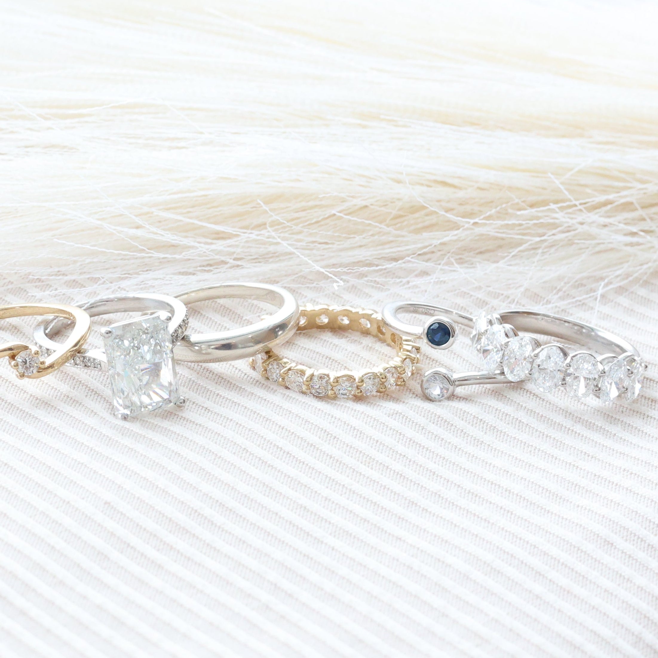 Use our interactive ring builder to explore styles, metals, and stone shapes.