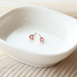 14 karat rose gold round brilliant cut fancy pink lab-grown diamond solitaire earrings with friction backs.