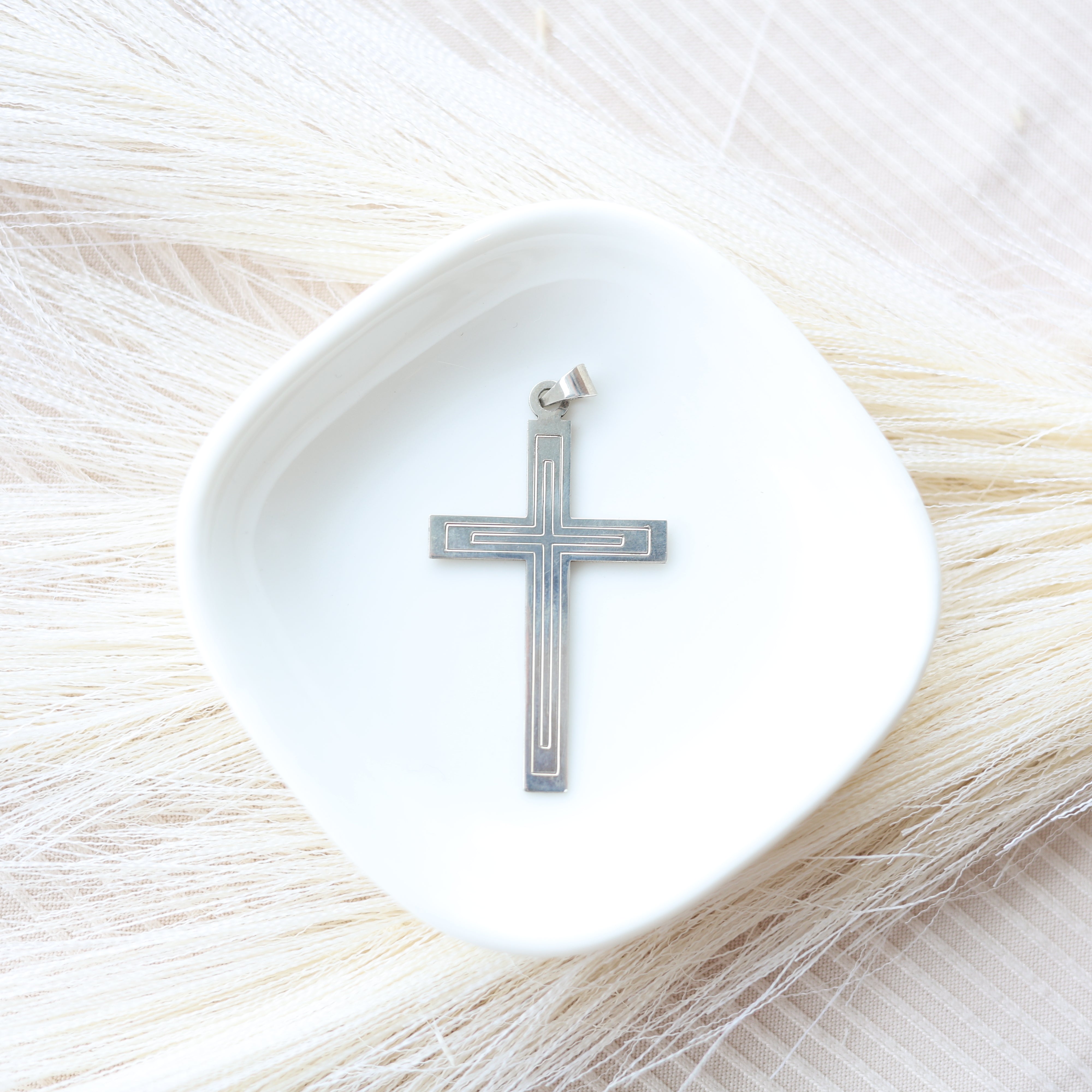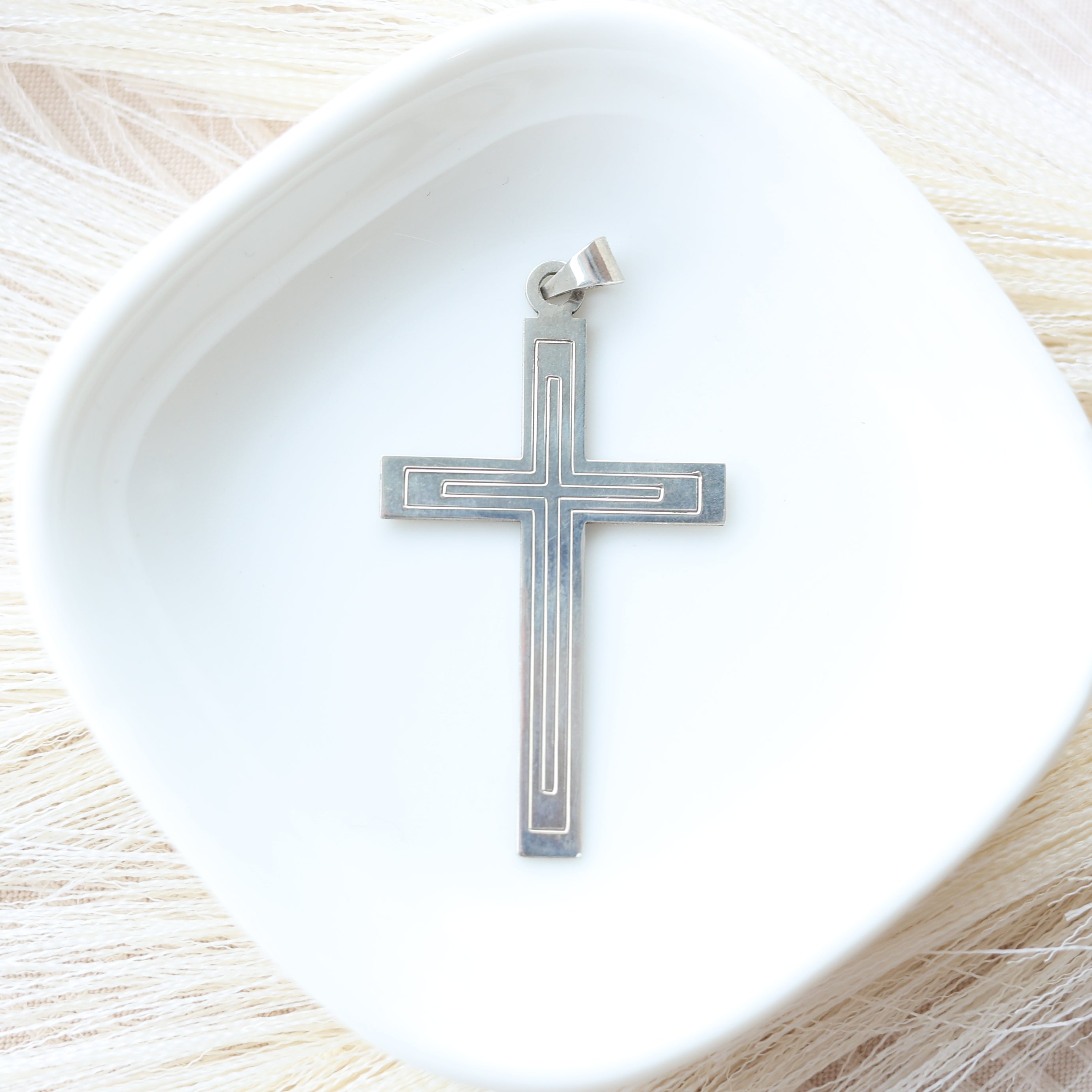 Sterling Silver large flat cross with bail.