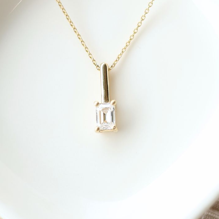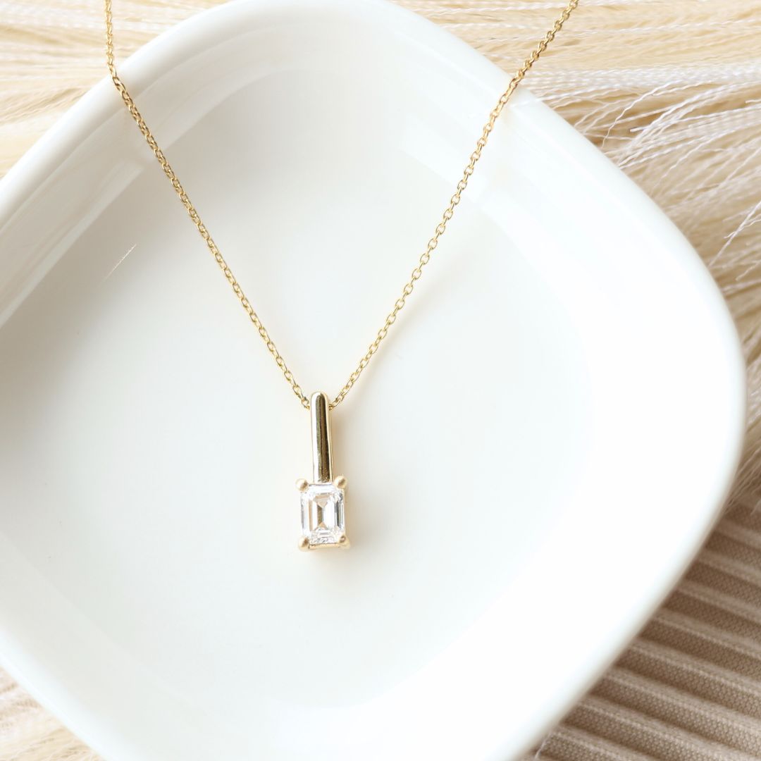 14k gold 0.50 carat emerald cut lab-grown diamond on an 18" stationed adjustable .95mm cable chain.