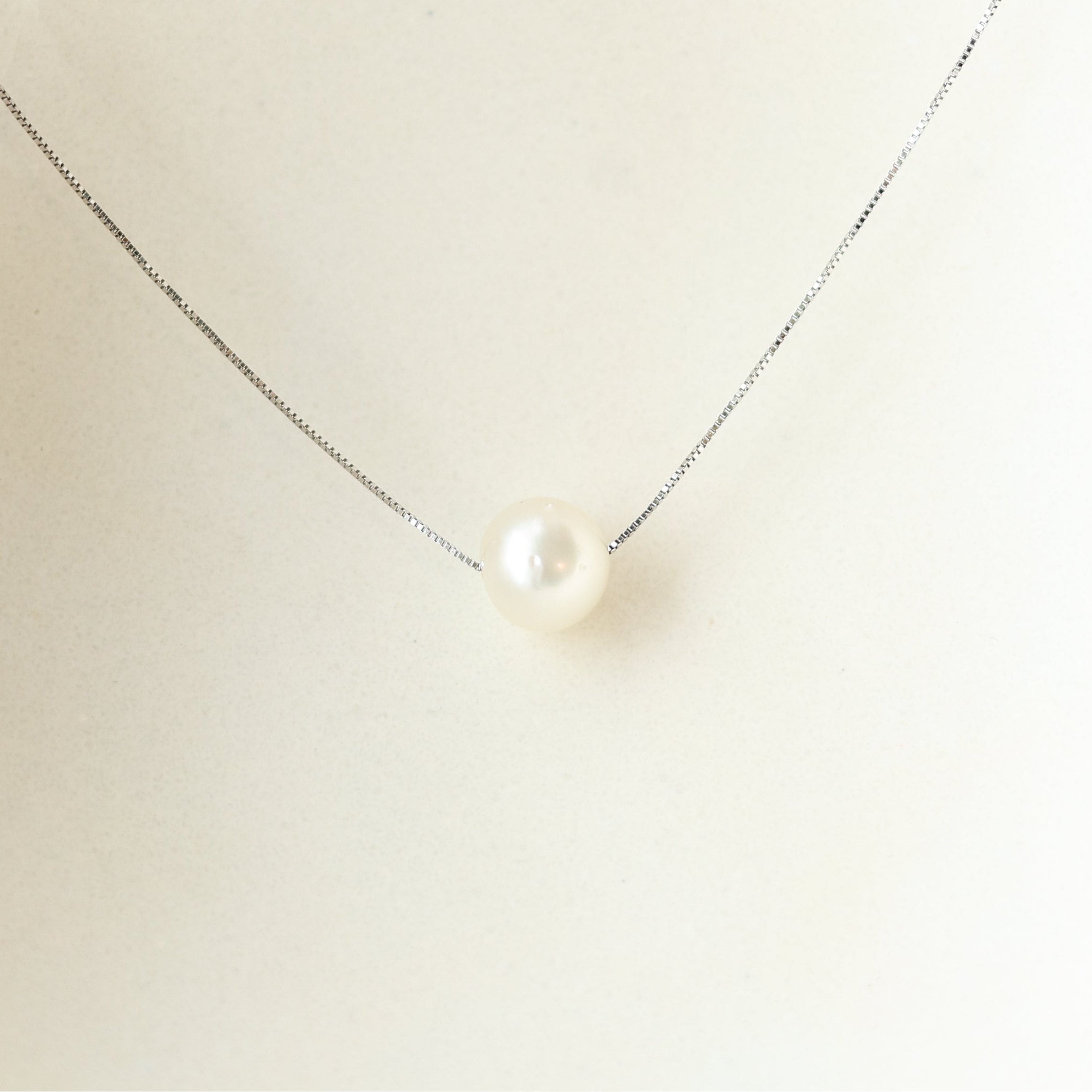 Pearl Pendant Necklace on a 14k white gold 18" stationed adjustable .95mm cable chain.