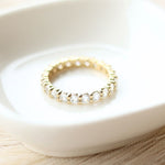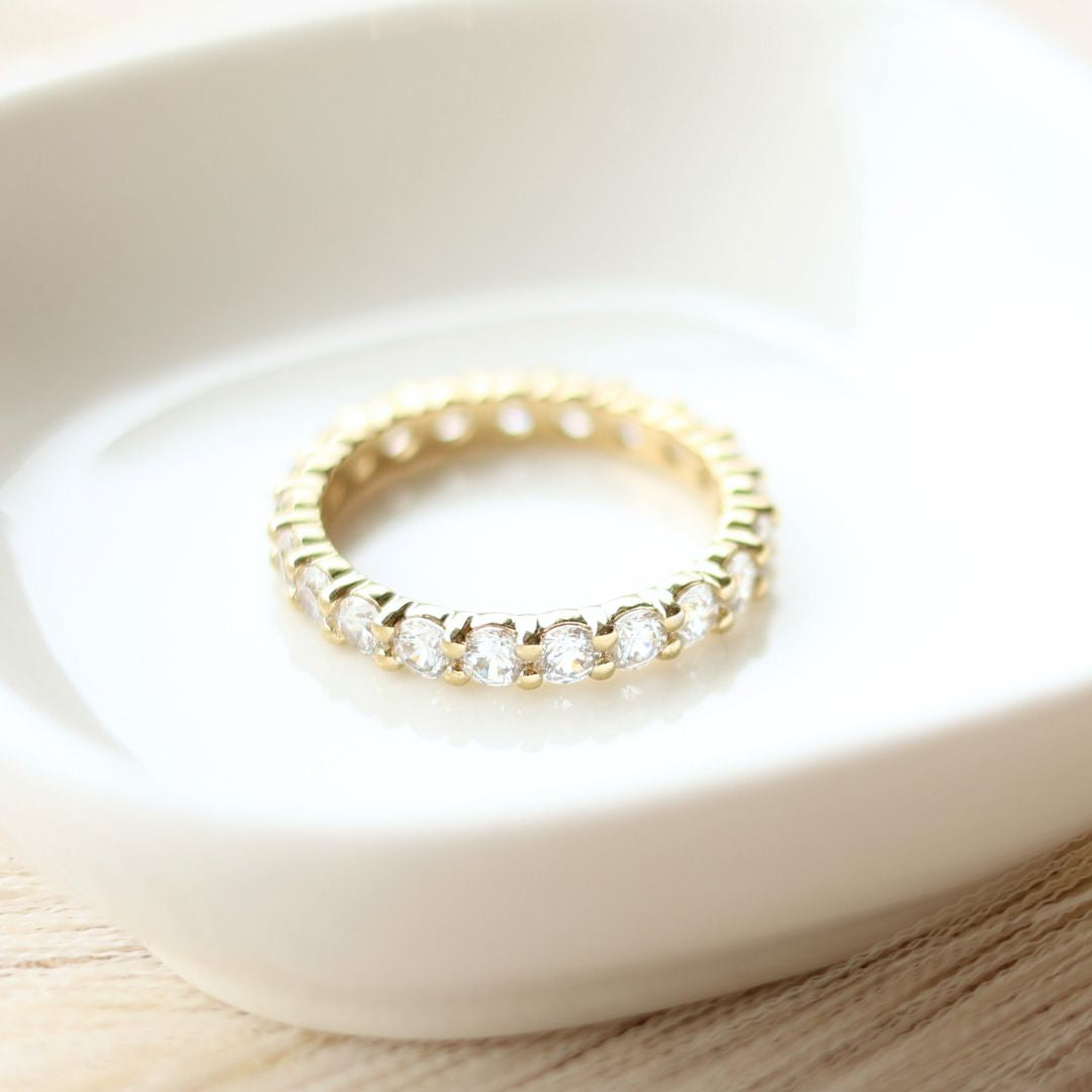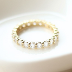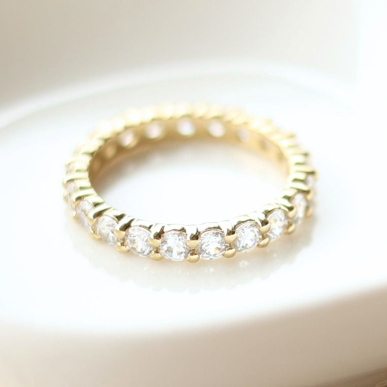 Because eternity bands have stones all the way around, they cannot be resized after production. If your size isn’t in stock, we will custom-make the band in your correct size.