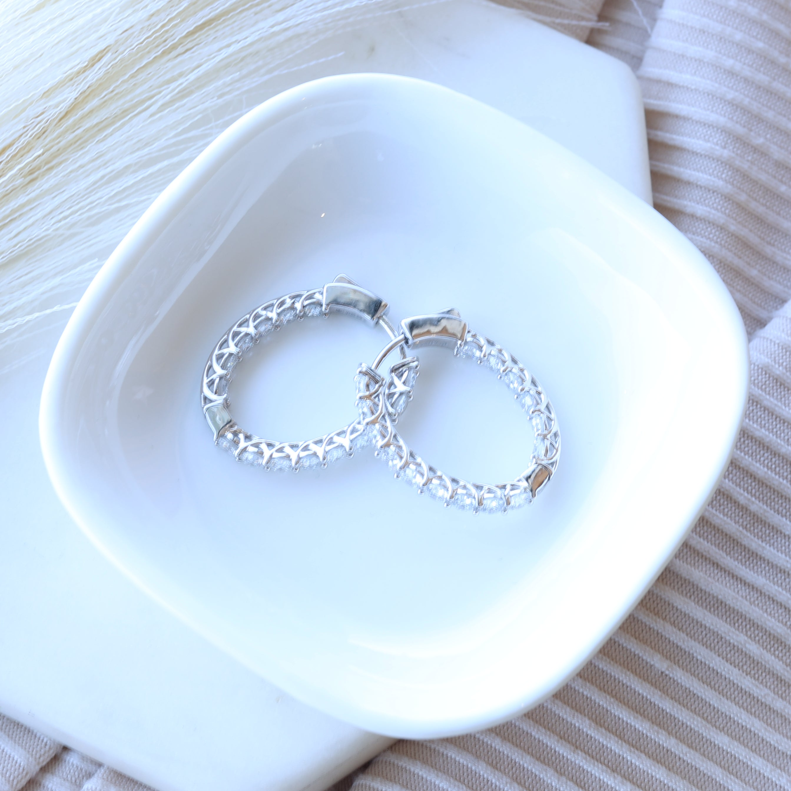 Sterling silver round brilliant cut lab-grown diamond inside outside hoop earrings.