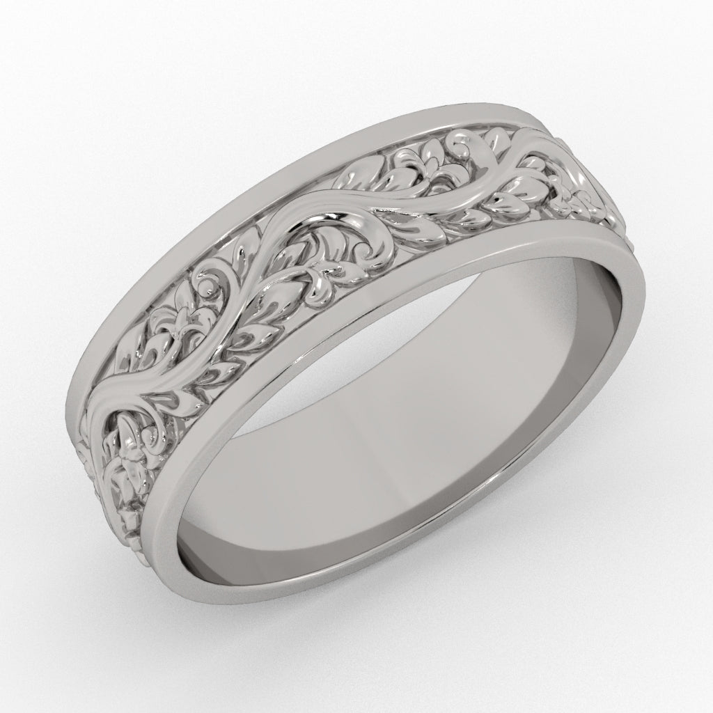 Sculpted Mens Wedding Band 7mm Wide