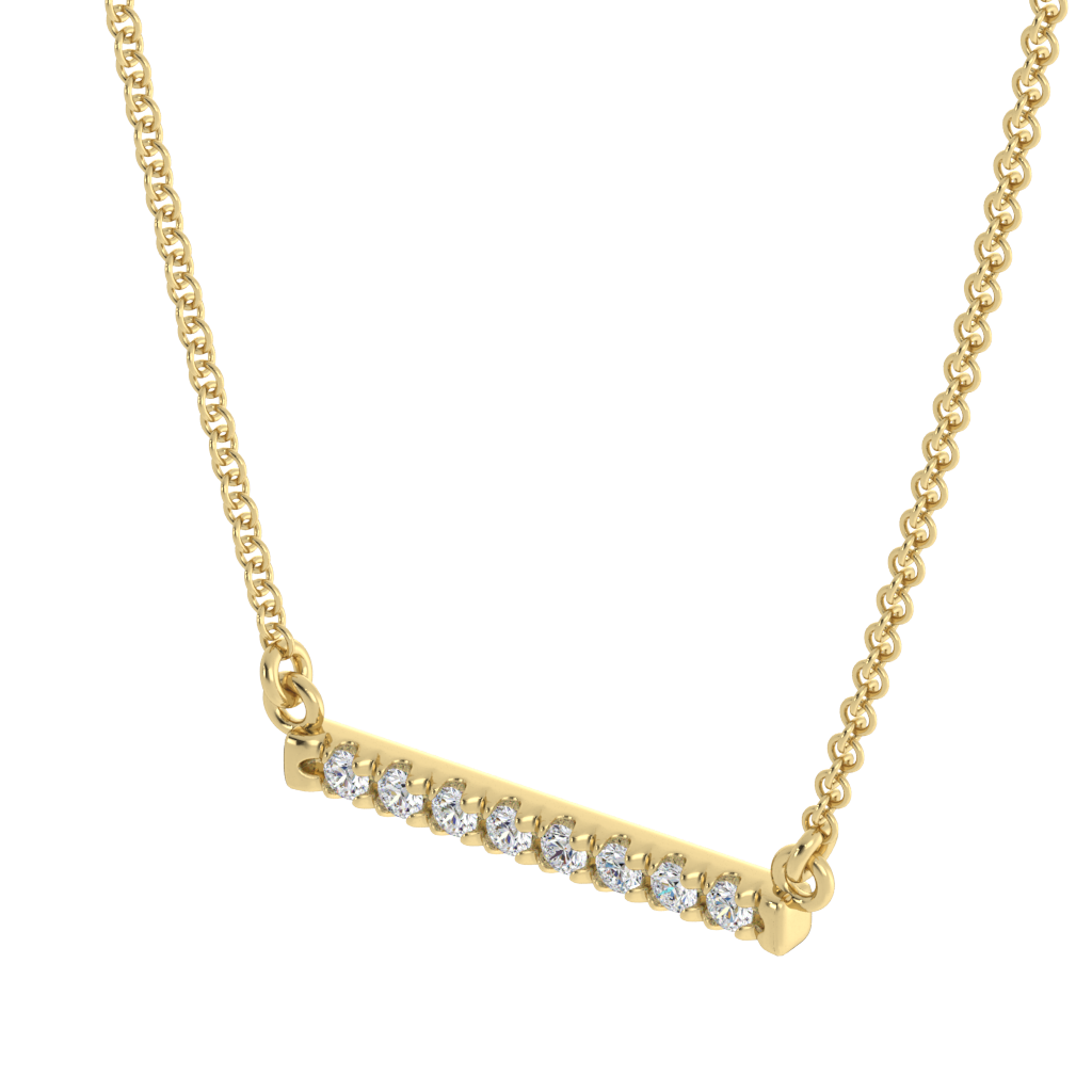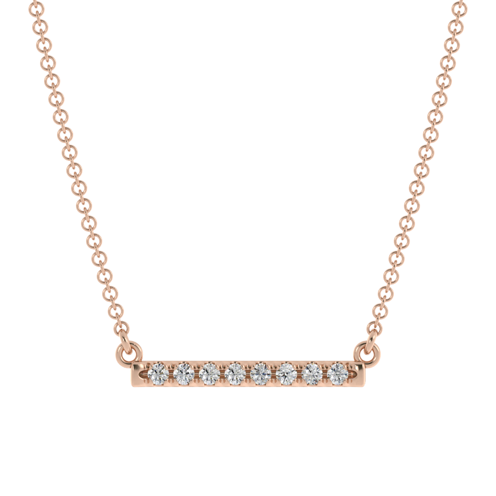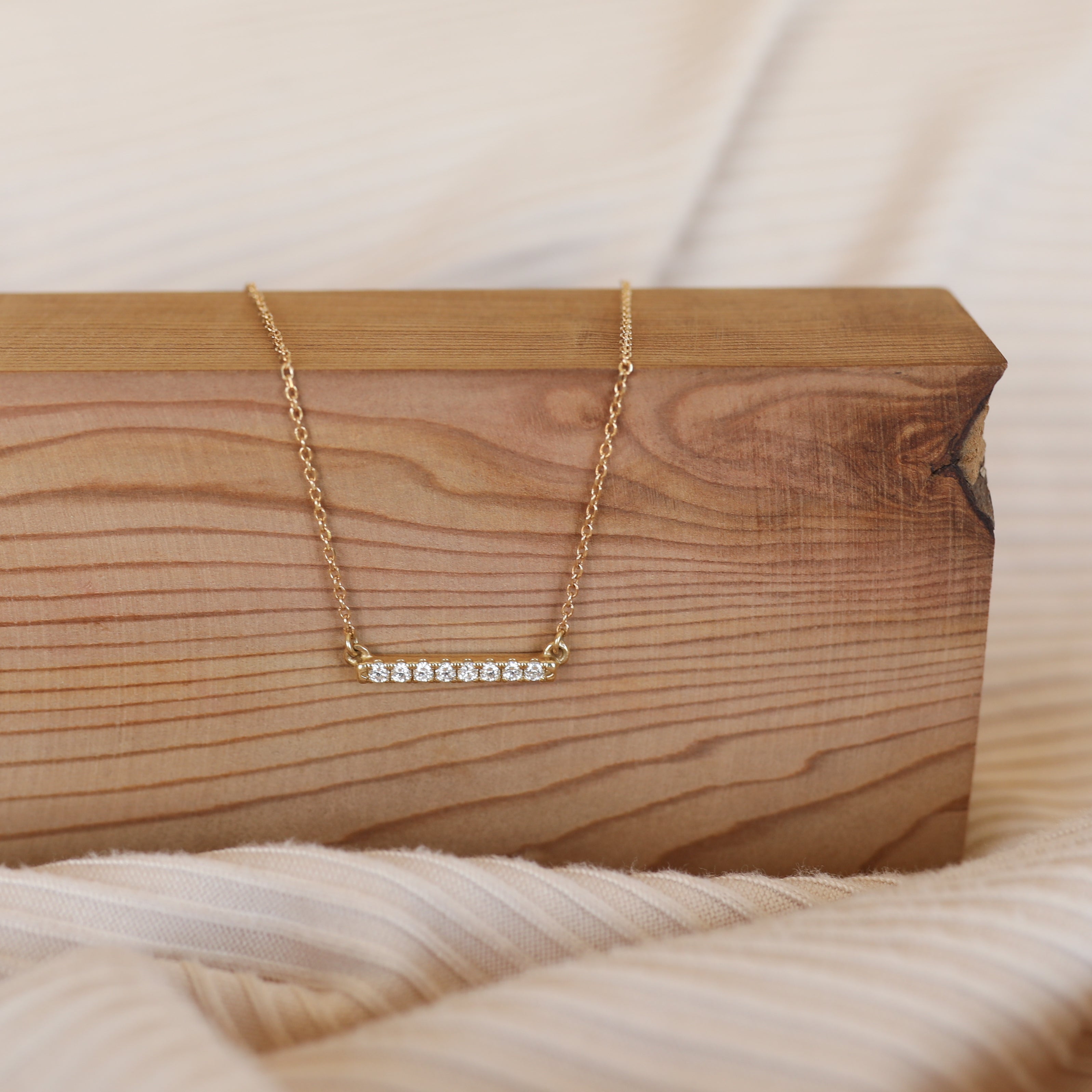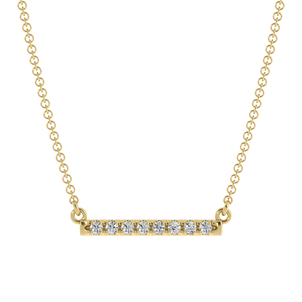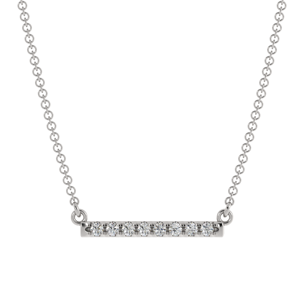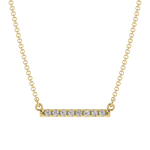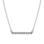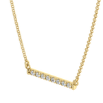 Crafted in 14k gold or sterling silver, this sleek bar pendant is accented with a row of brilliant diamonds for a refined touch of sparkle. Measuring .75" by .10", it rests gracefully along the neckline — a timeless piece that layers beautifully or shines on its own.