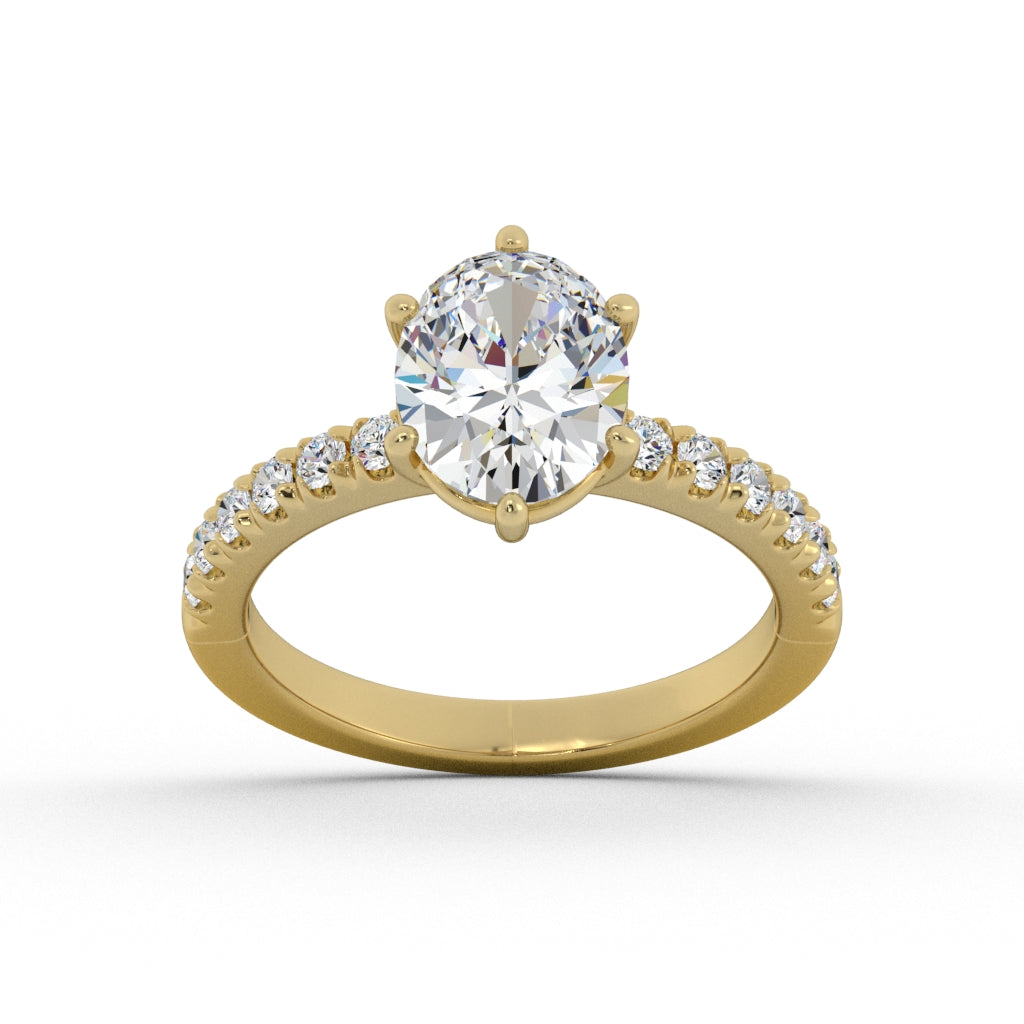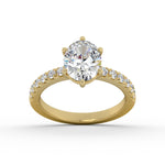 Classic Enagement ring with round diamond accents.