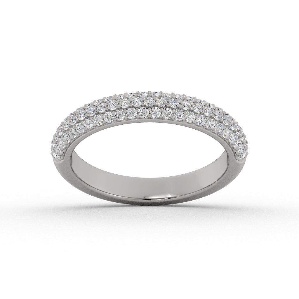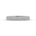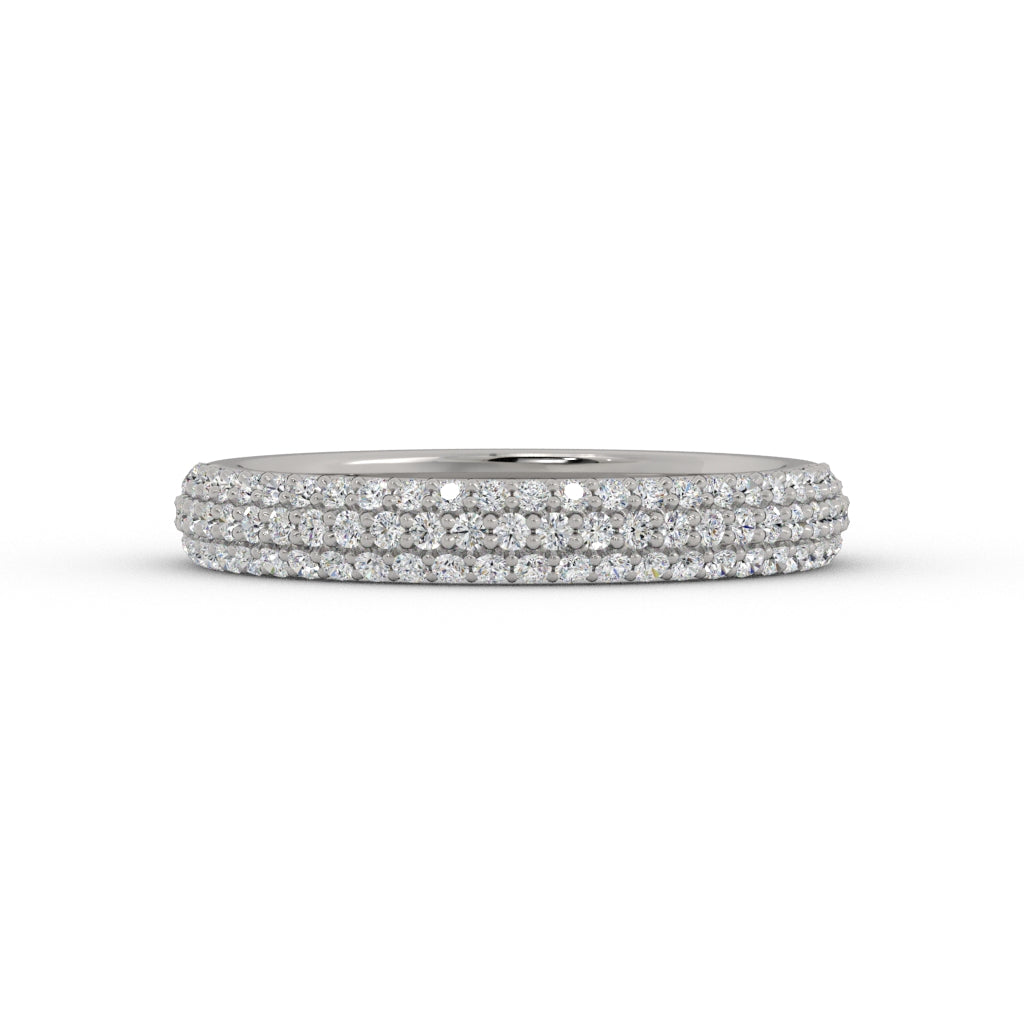 This triple-row diamond band offers a modern twist on timeless sparkle. Perfect as a wedding ring, anniversary band, or a chic stacking essential, it’s a piece that shines with elegance for every occasion.