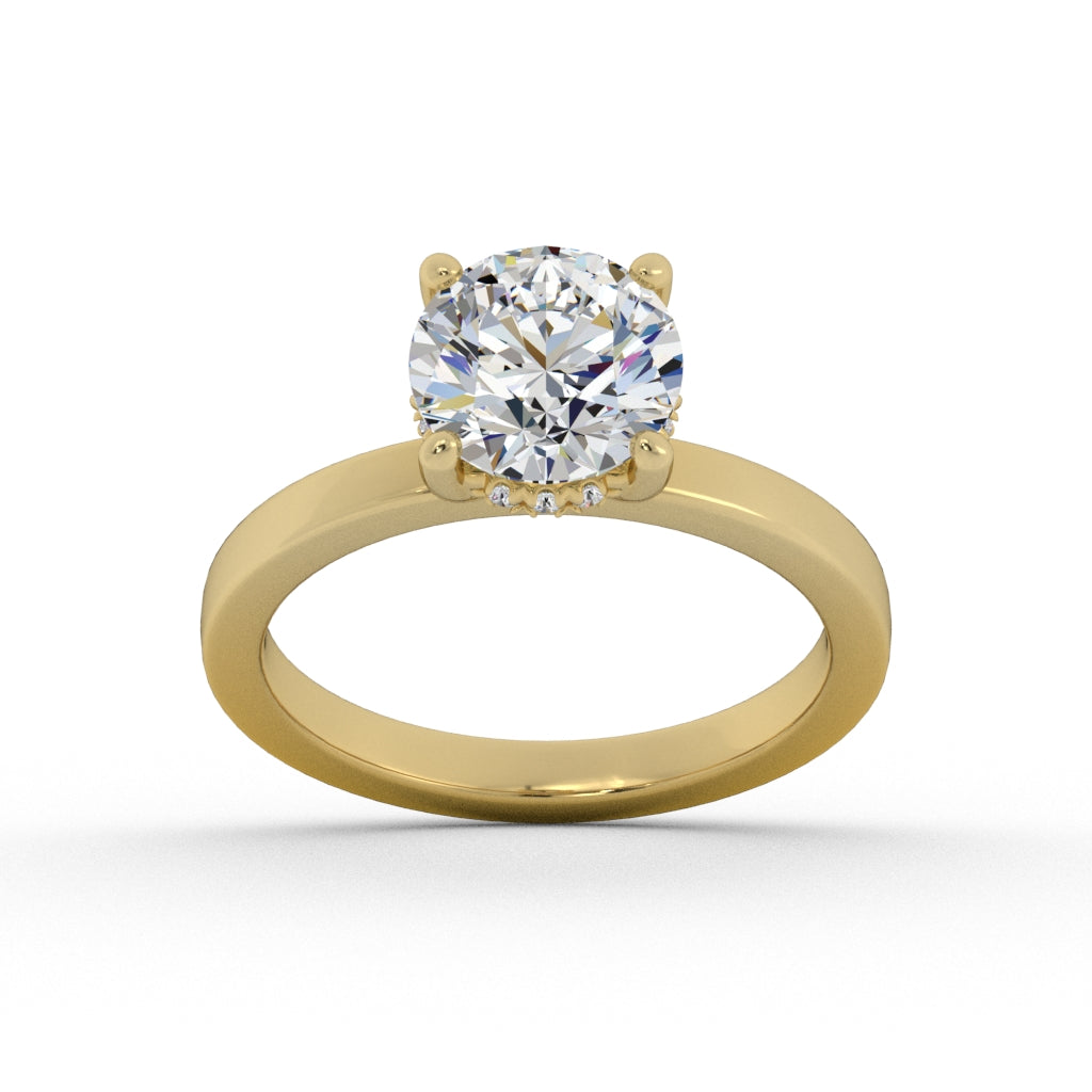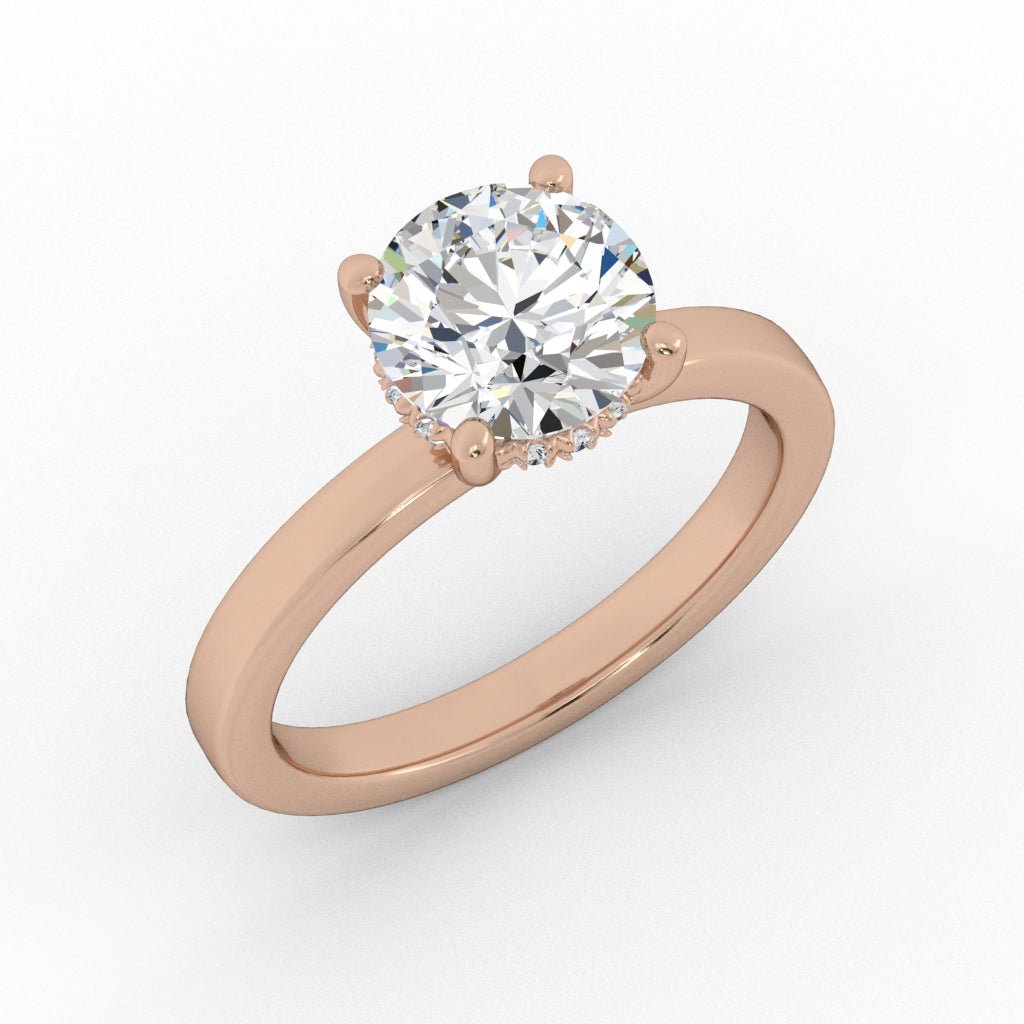 Classic solitaire engagement ring with a hidden halo of diamonds under the center.