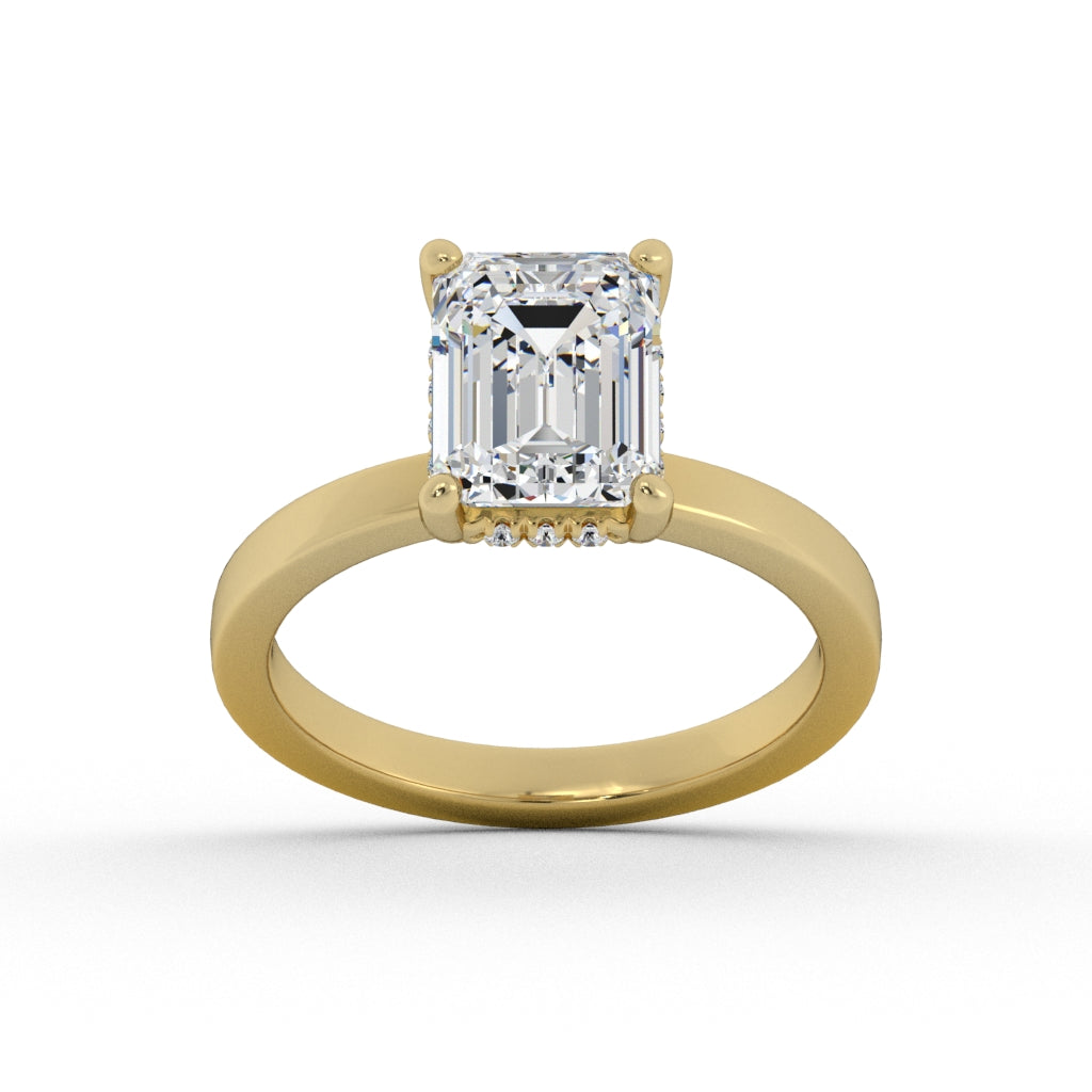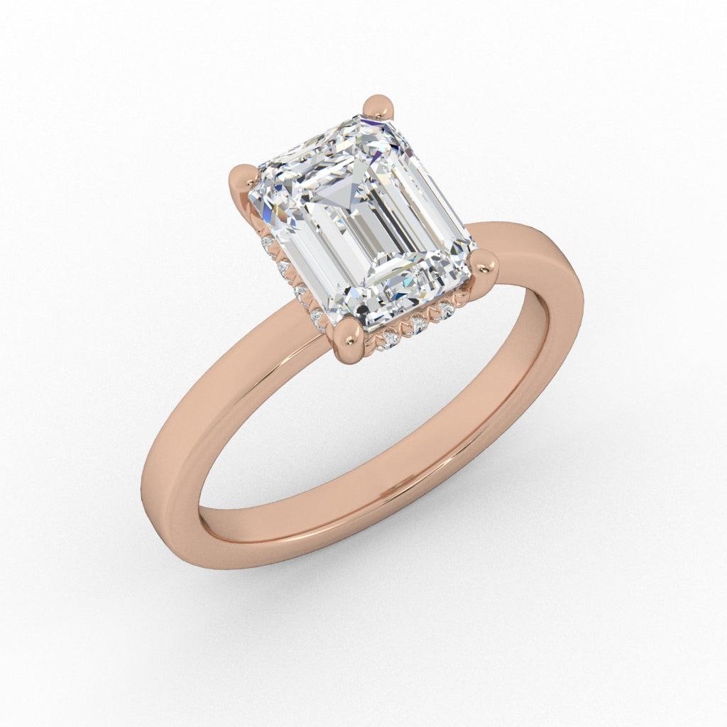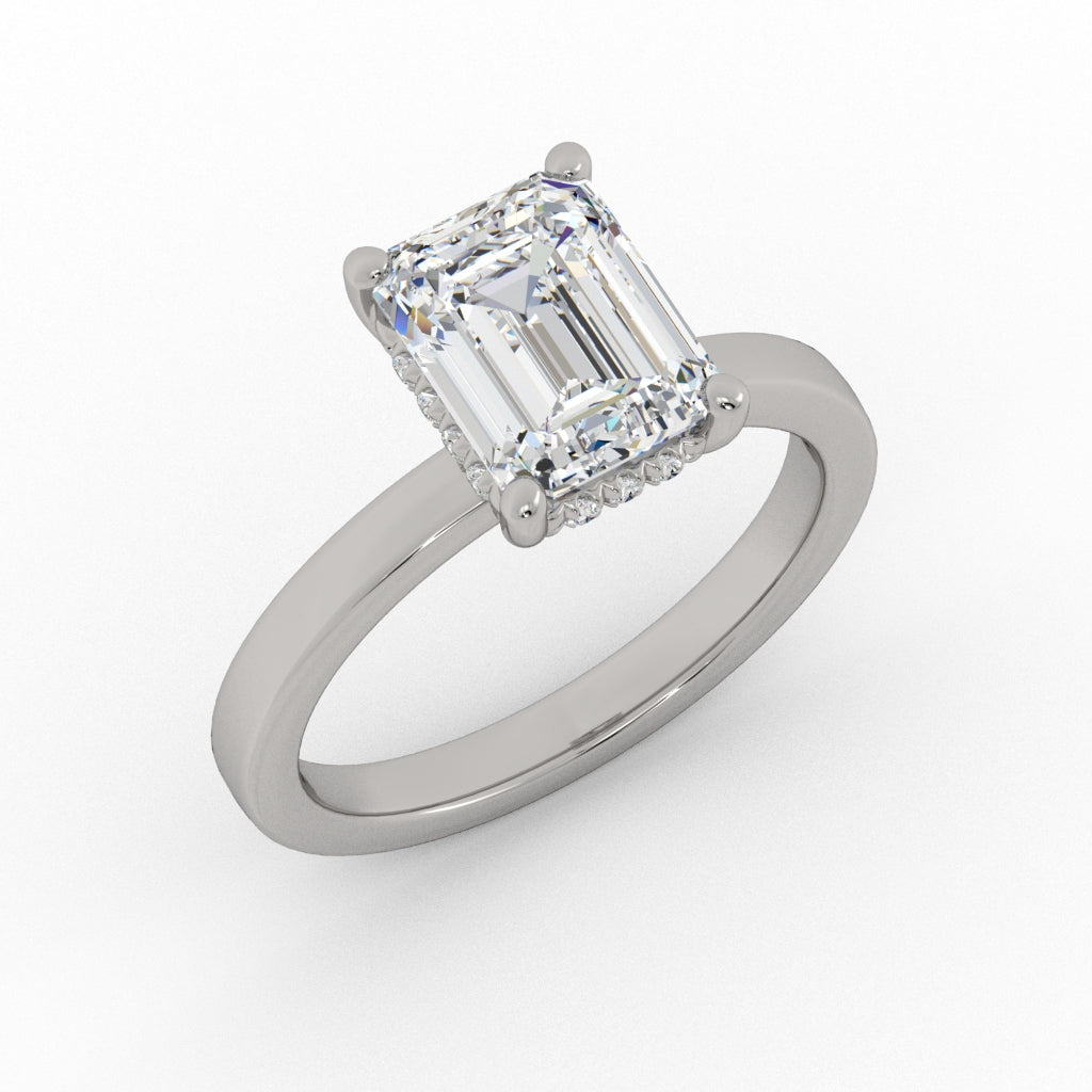 Classic solitaire engagement ring with a hidden halo of diamonds under the center.