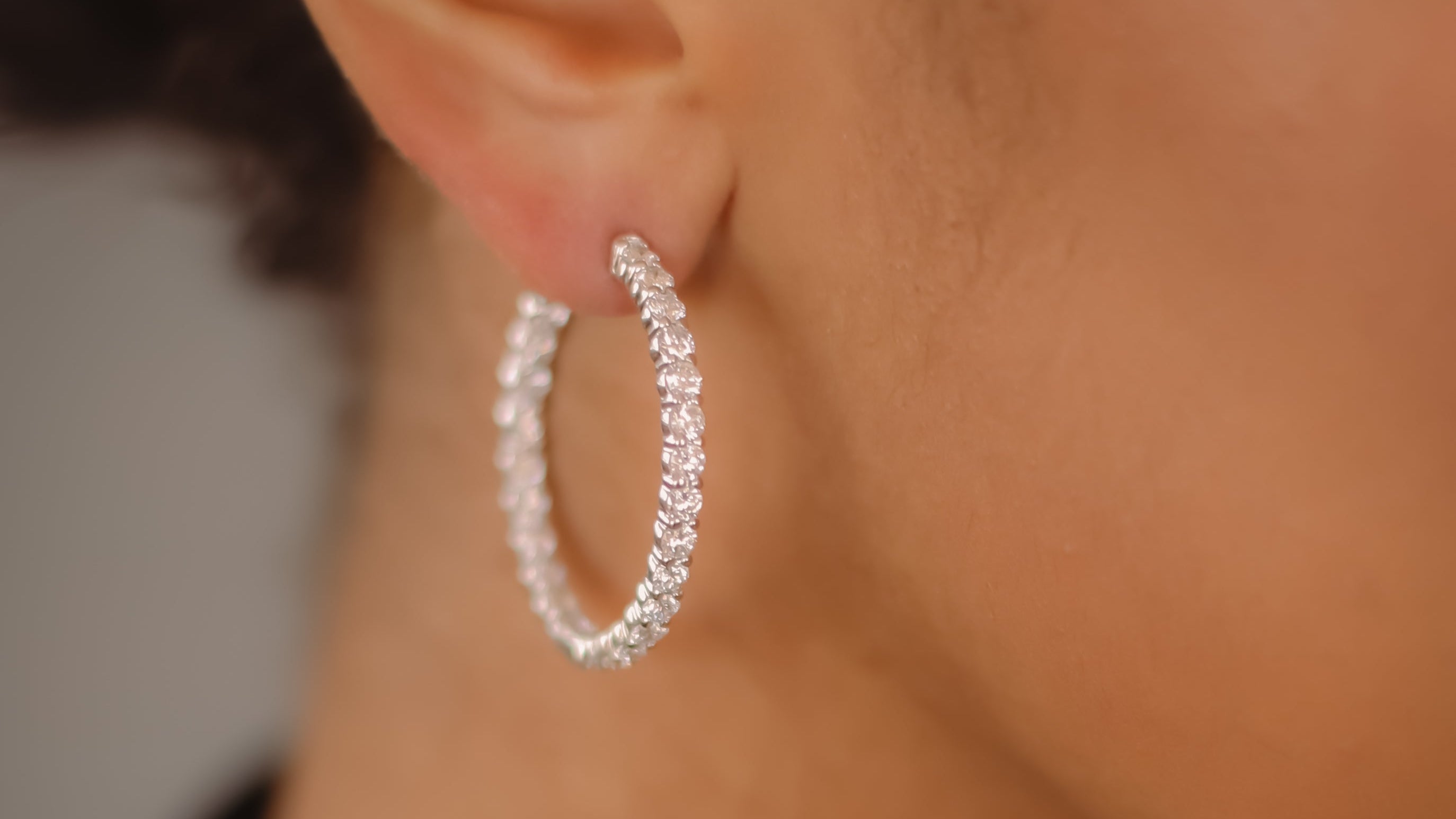 The side diamonds are of the same quality as the center diamond, ensuring a beautifully matched pair that enhances the overall design of your jewelry.