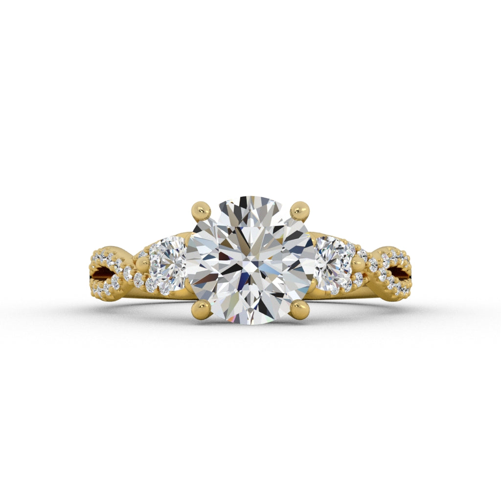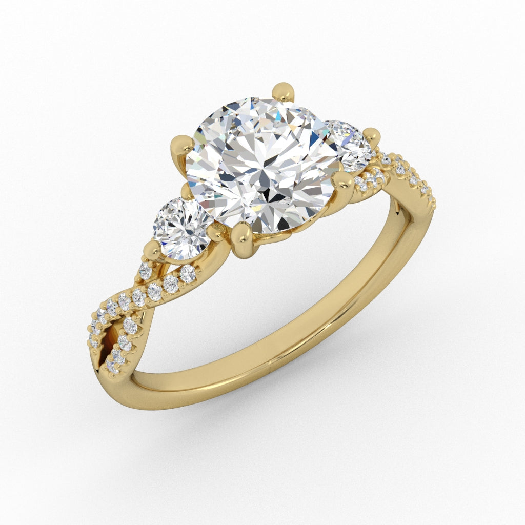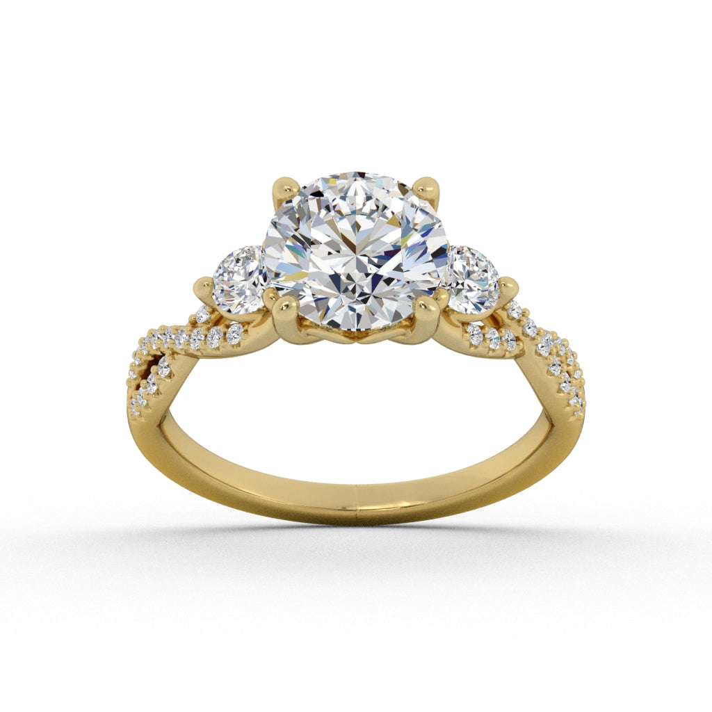 A "twist" on a classic three stone ring.