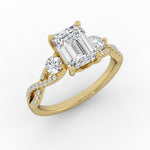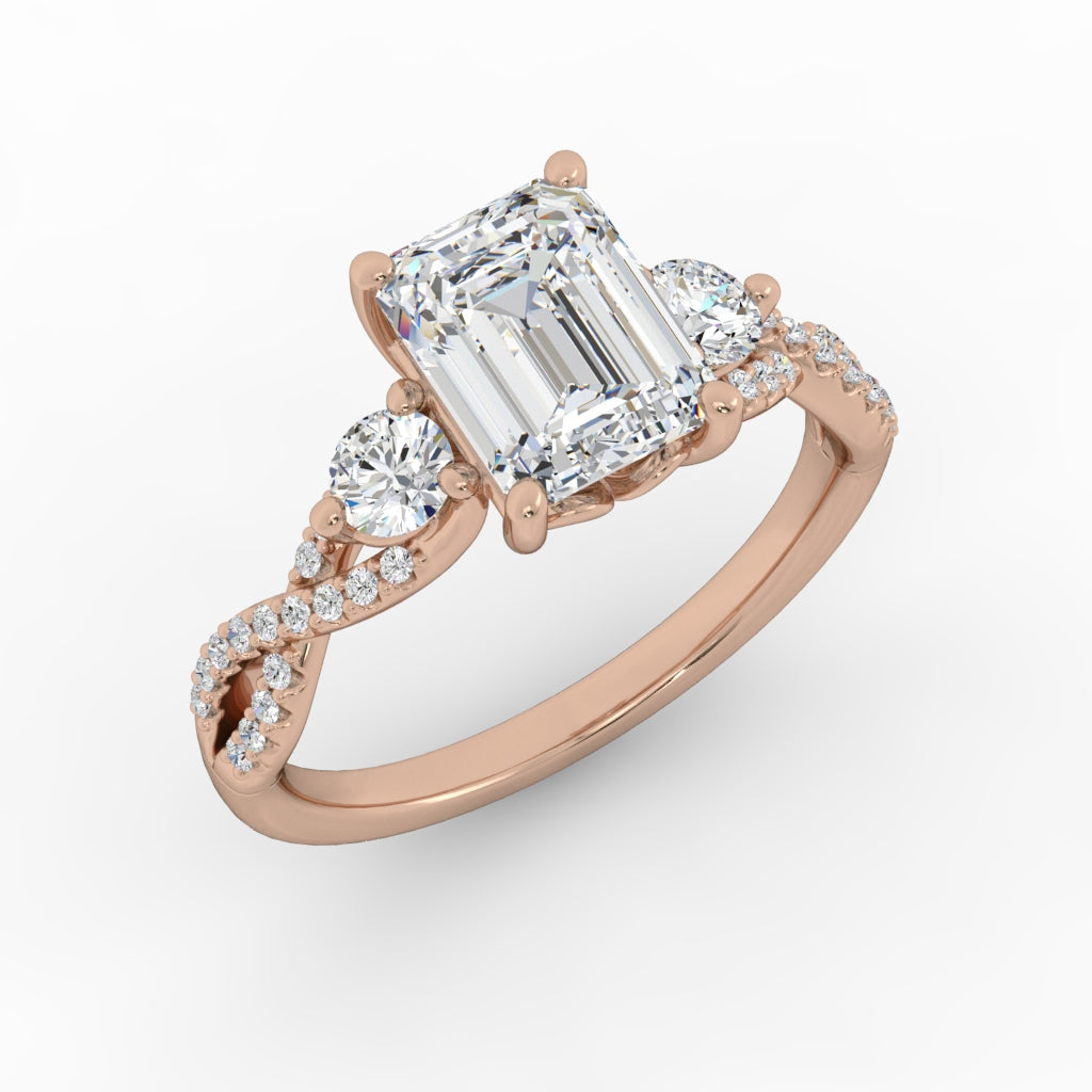 A "twist" on a classic three stone ring.